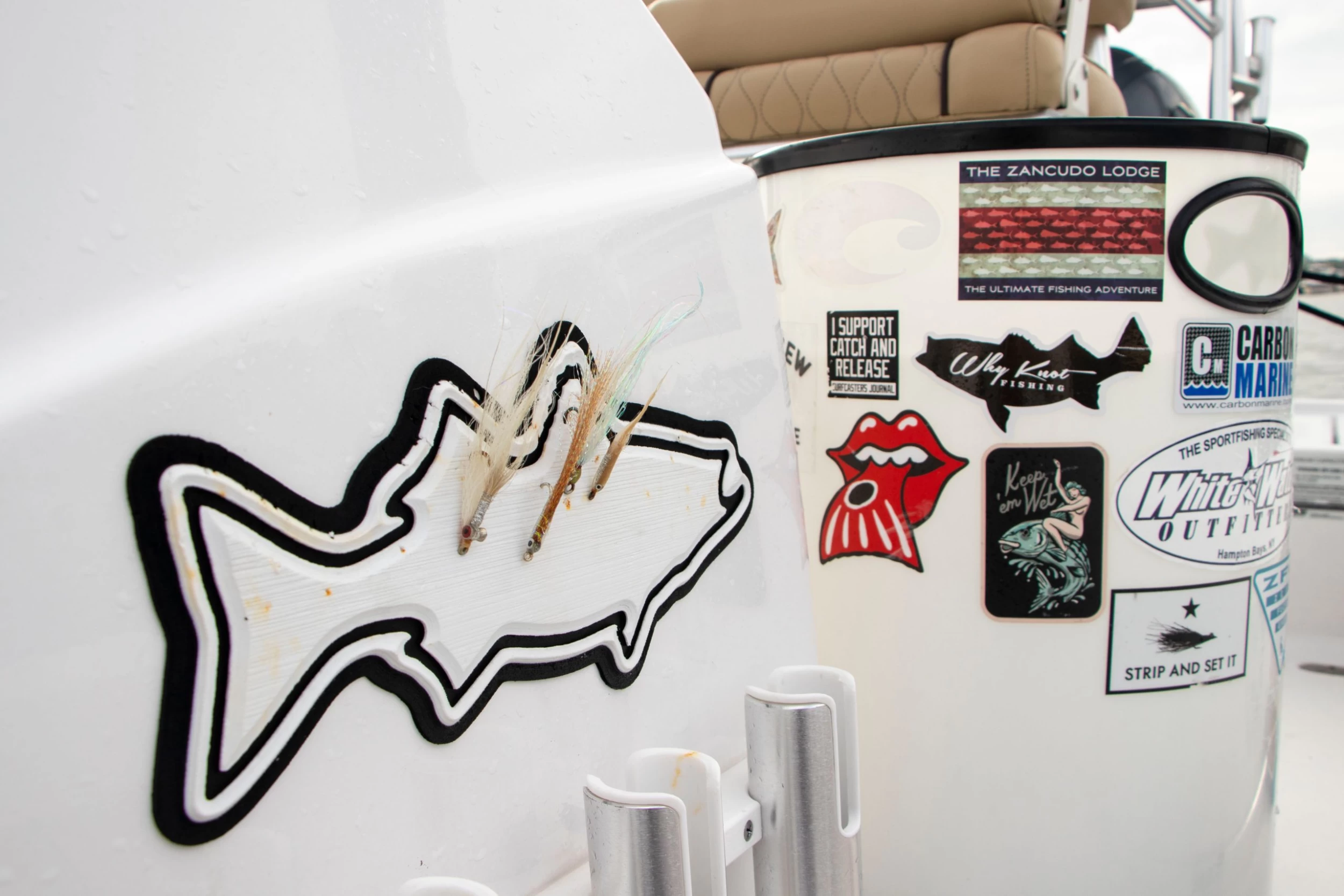 Stick with what you love. FishSticks can be applied to anything from a bumper to the bulkhead of your boat with its strong 3M adhesive backing. They were originally designed to store used flies on the fly by simply sticking the hook into the EVA foam for safe storage until you’re ready to re-tie or put back in the box. We quickly came to realize that they can also be used to show your love for fishing, or even reel protection, the choice is yours!