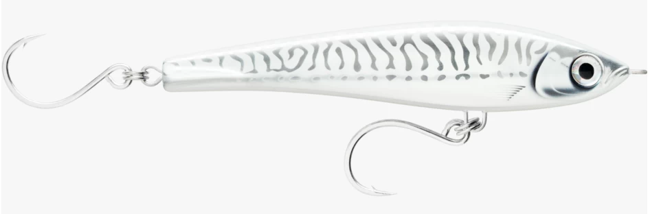 Weighted for long-casts and designed for fast, aggressive retrieves, the X-Rap® Magnum® Stick 17 swims in wide S curves on retrieve. The horizontal line tie allows for a wider swimming action. Heavy-duty through wire constructions withstands savage big blue water predators. Once stopped, the stick bait dives head-down with a fish triggering flutter. Durable plastic body in either translucent with internal scalloped foil or chromed finishes. Even the slightest motion creates a life-like flash.