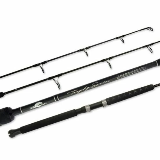 Tsunami Trophy Jigging Rods feature new slim profile blanks using a precision blend of unidirectional graphite composite and a full length, action-tuned outer layer of high modulus mesh graphite for greater lifting power with minimal weight and increased resistance to damage. These rods are excellent for medium to heavy duty inshore saltwater applications.