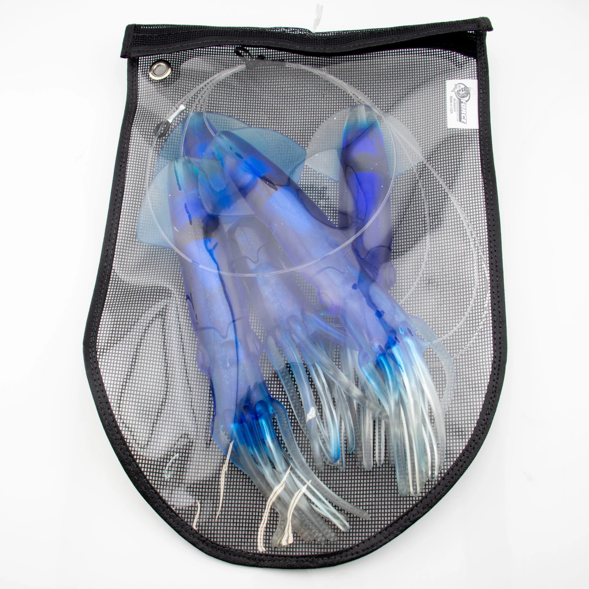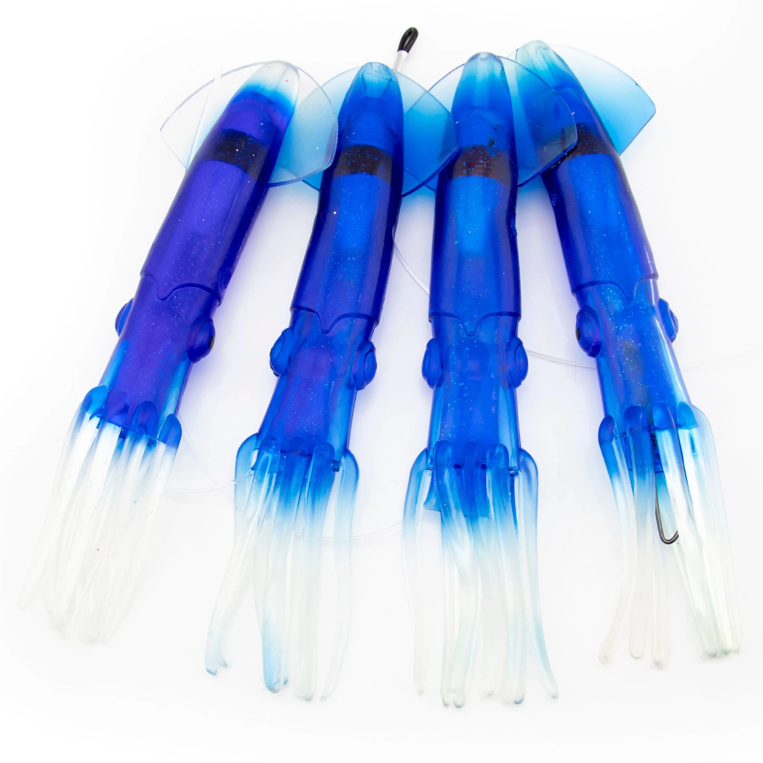 The “Squid Hound Billfish Special” teaser chain is rigged with four SquidNation Mauler 12″ squids. You can run this teaser chain off the rigger with a teaser chase-bait behind it.Â
